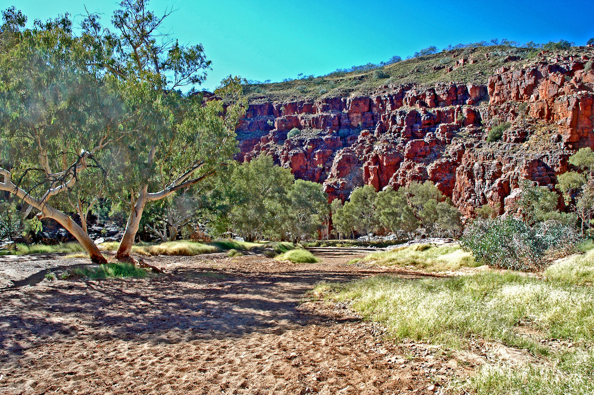 At the northern end of Ruby Gap Nature Park is a narrow and rugged, but strikingly beautiful waterhole, where the Hale River has cut deep through the rock. Lindsay discovered this passage on his wedding anniversary and named it after his wife, Glen Annie Gorge .