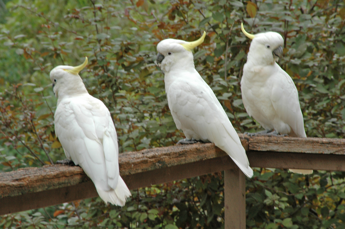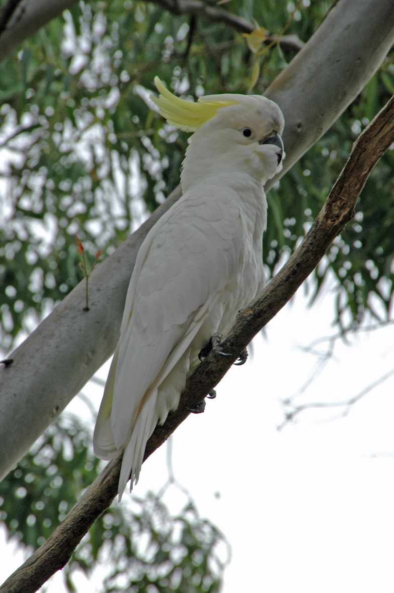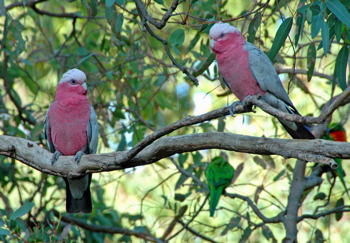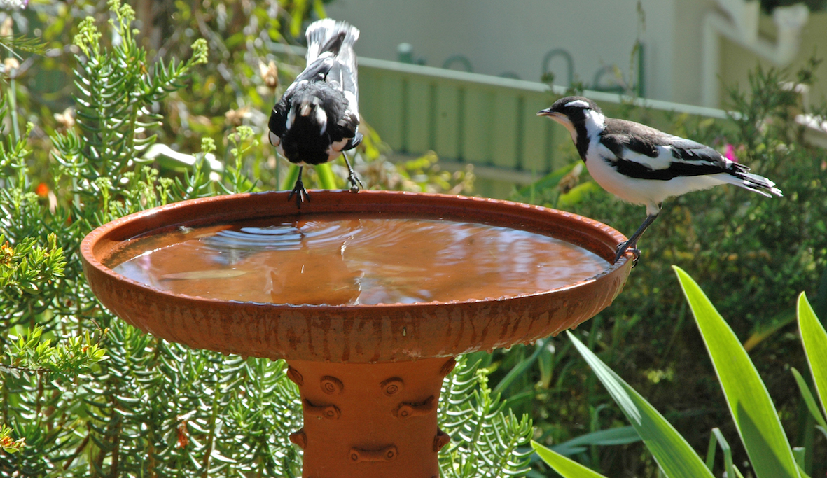 As summer continued without rain, the birds developed a routine. The rainbows remained dominant, challenged only by the musks, but other birds visited regularly. They all seemed to have a time slot in which to drink and bathe. Adelaide and eastern rosellas were timid, quick to fly off if we came too close. Crimson rosellas dropped in only occasionally. The miners, magpies and crested pigeons established themselves. Galahs and kookaburras were content to watch from the safety of the trees, coming down only at dawn and dusk. Large flocks of sulphur crested cockatoos appear every spring. They are magnificent, but they frighten the smaller birds and are destructive, so we discourage them.