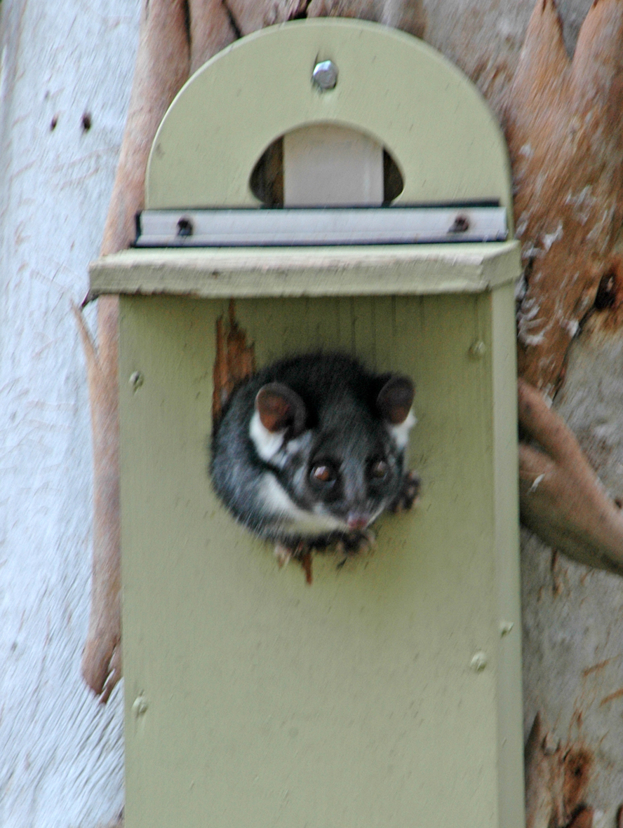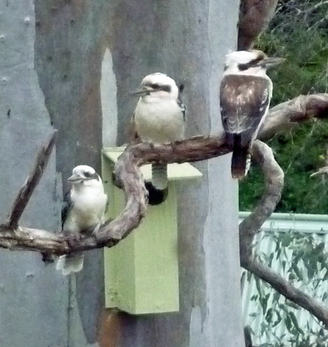It can take 300 years for a eucalyptus to develop natural nesting holes suitable for nesting, but I was able to make a substitute in about an hour. This is simple and no special skill is needed. The birds are not impressed by fine carpentry, but the boxes must be weatherproof. I used wood, but plastic drums or pipe would serve as well. Don't use metal, it becomes too hot. Entrance holes should be near the top and perches are unnecessary for Australian native birds.They attract pest species such as starling and sparrows. Place them 3 metre or more above the ground, preferably shaded from the afternoon sun and sheltered from prevailing winds and rain. Trees are a logical choice for sites, but one of our most favoured sites is on a shady wall.