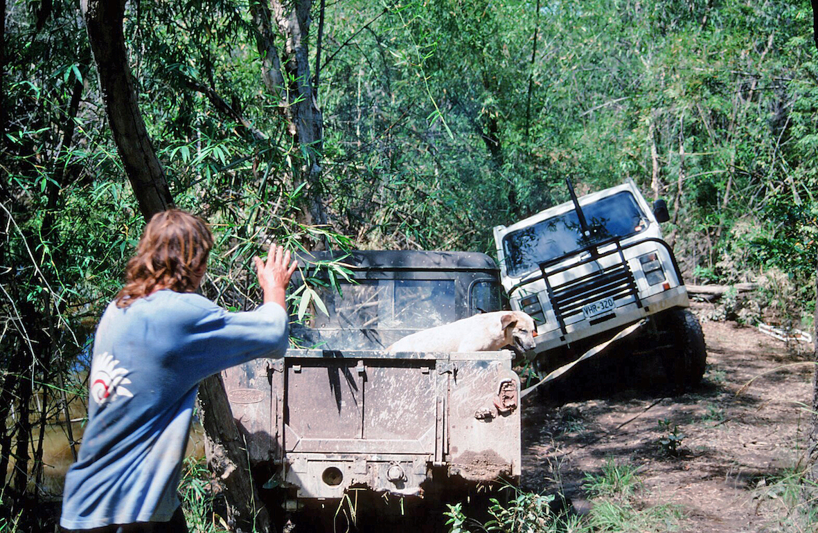 Each time the Rover stalled in a shower of water the dogs took their chance and escaped. Each time Peter had more difficulty getting them back in. Each time more of the back end of the Landrover disintegrated.