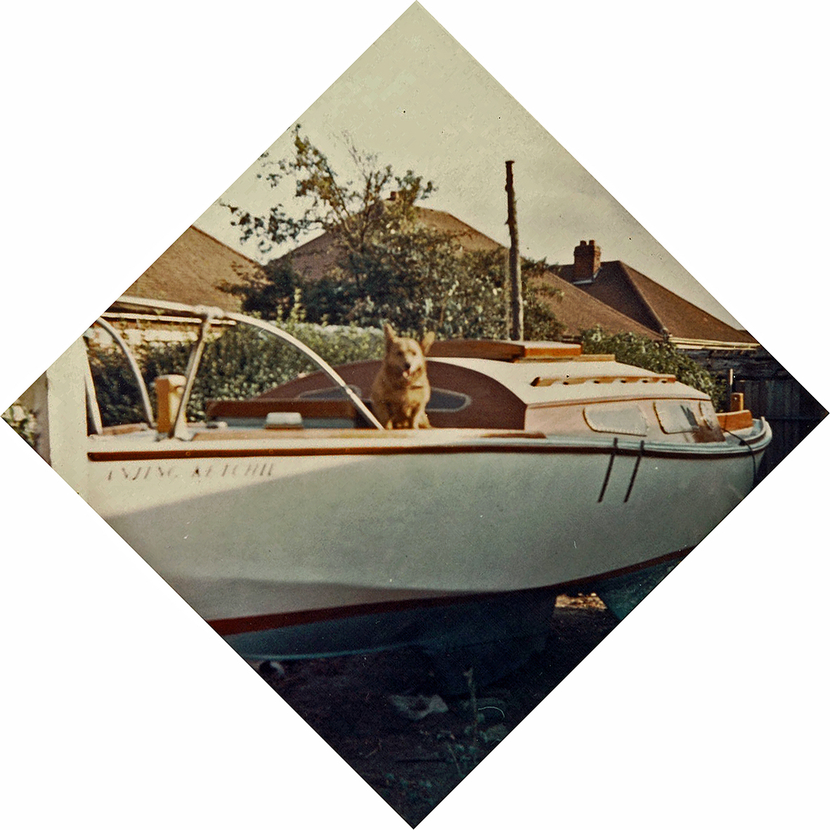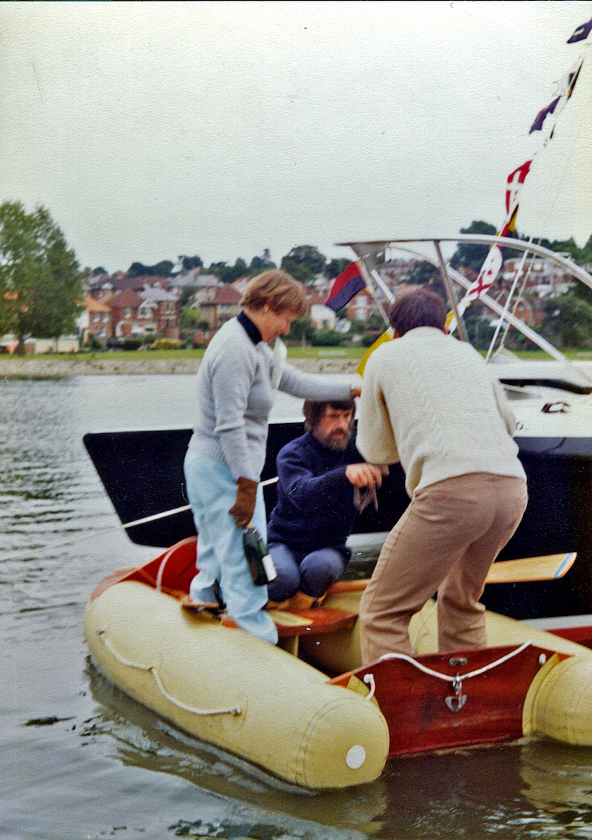 The following Sunday, we celebrated the launch and held a naming ceremony, where my wife broke a bottle of French champagne over the bows. It had been provided by her brother and he'd come to watch, so we had no alternative but to use it as he intended. Once again the boat was named after our dog.
