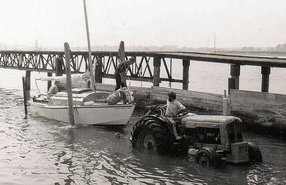 As the completion date drew closer, I began to think of a name for the boat. It was only a small boat, some twenty-three feet six inches over all and Susan was only a small dog. I thought it would be good to name the boat after the dog, but I Gybed at calling the boat Susan. As a compromise I decided to name it Little Dog. Later I revised this to Anjing Ketchil, which is Malay for Little Dog.