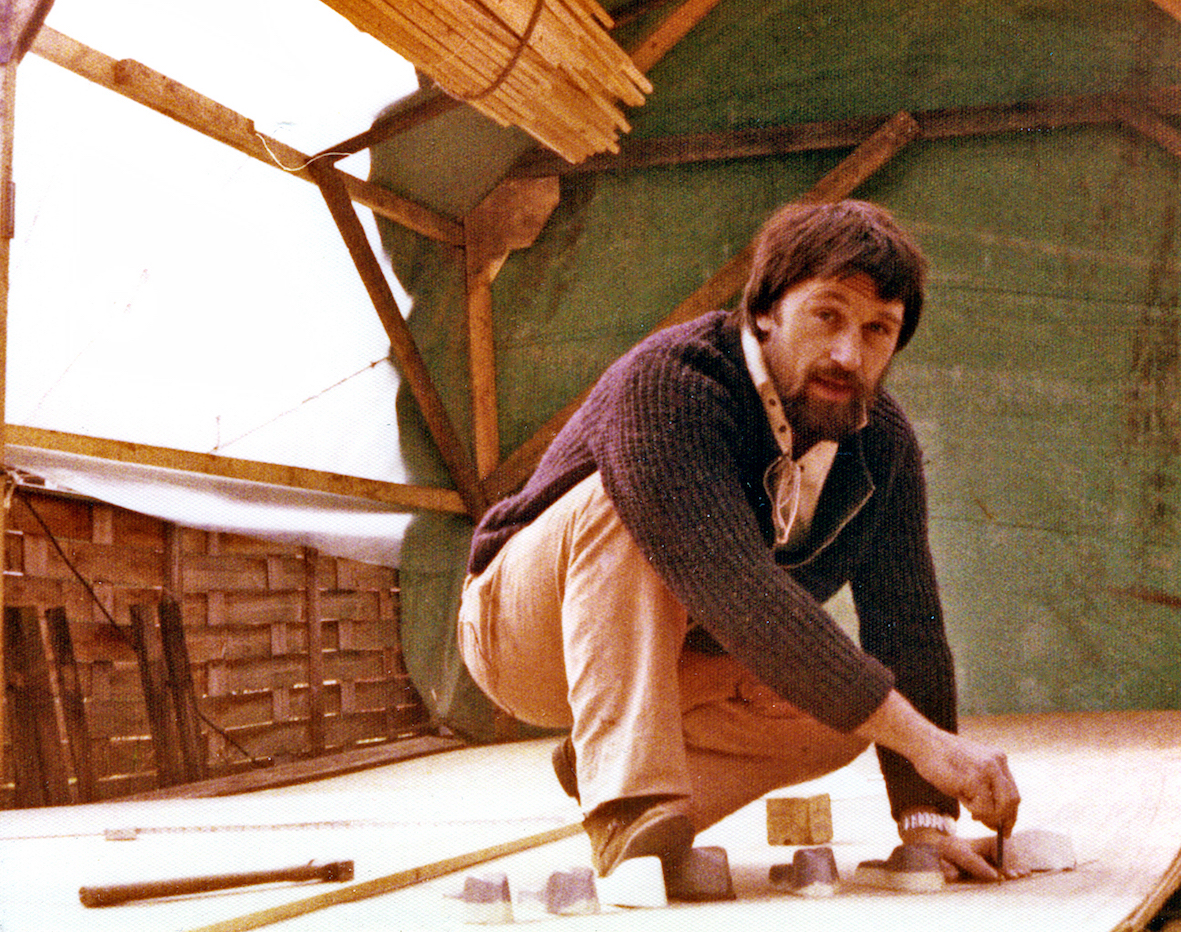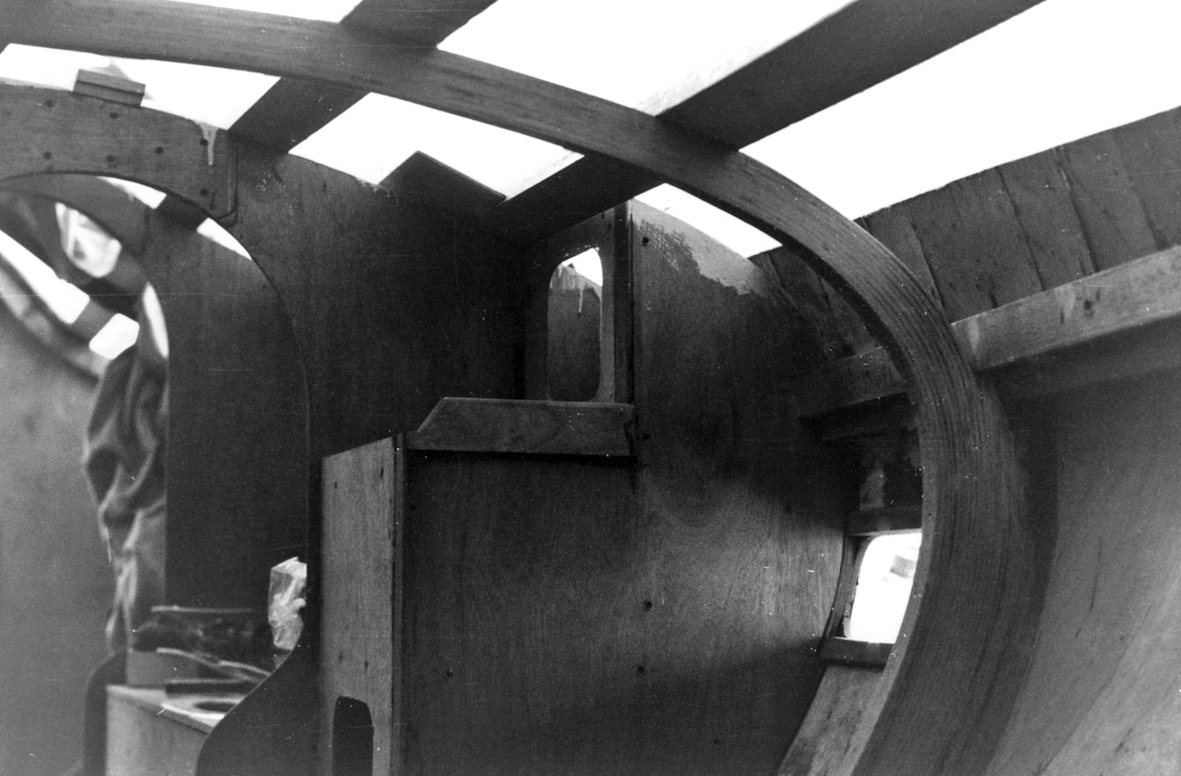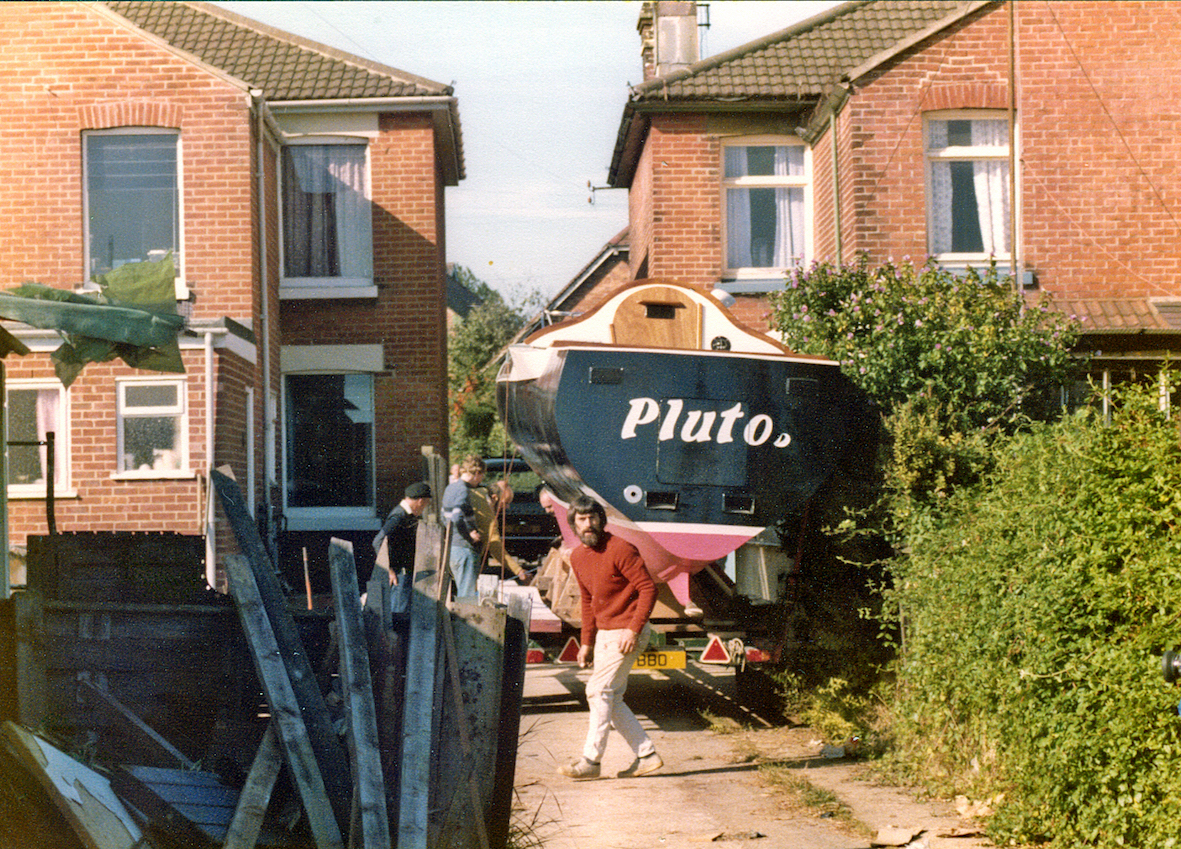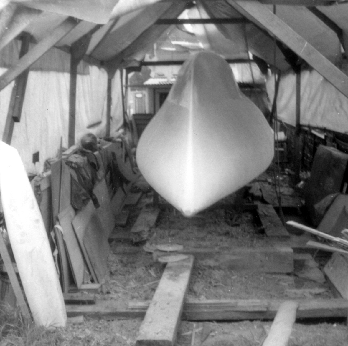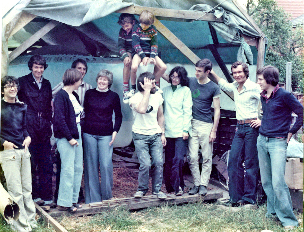 The initial task was to erect a temporary cover over the back garden to protect the project. That temporary shelter remained for five years, the time it took to build the trimaran. By that time the OSTAR was history and the rules for the next race, some four years later, had been altered. No longer did the design comply with the smallest class, but that's life.
