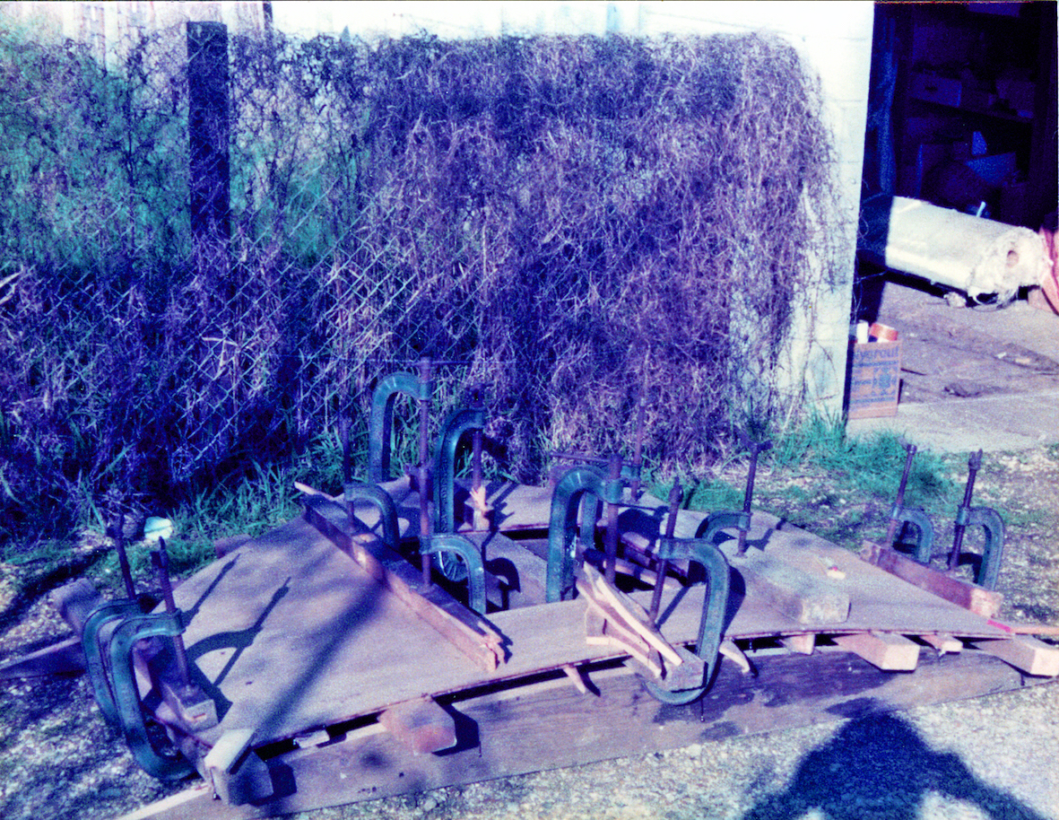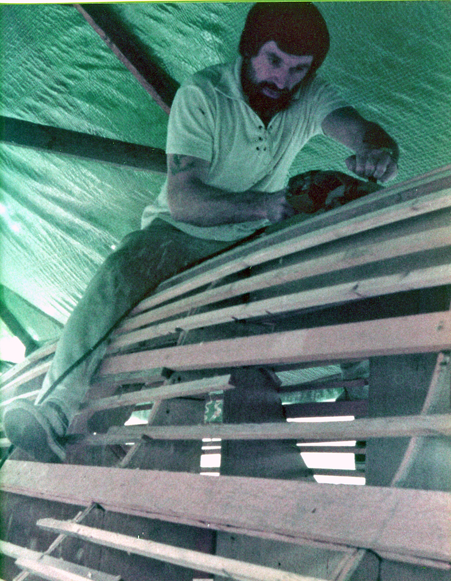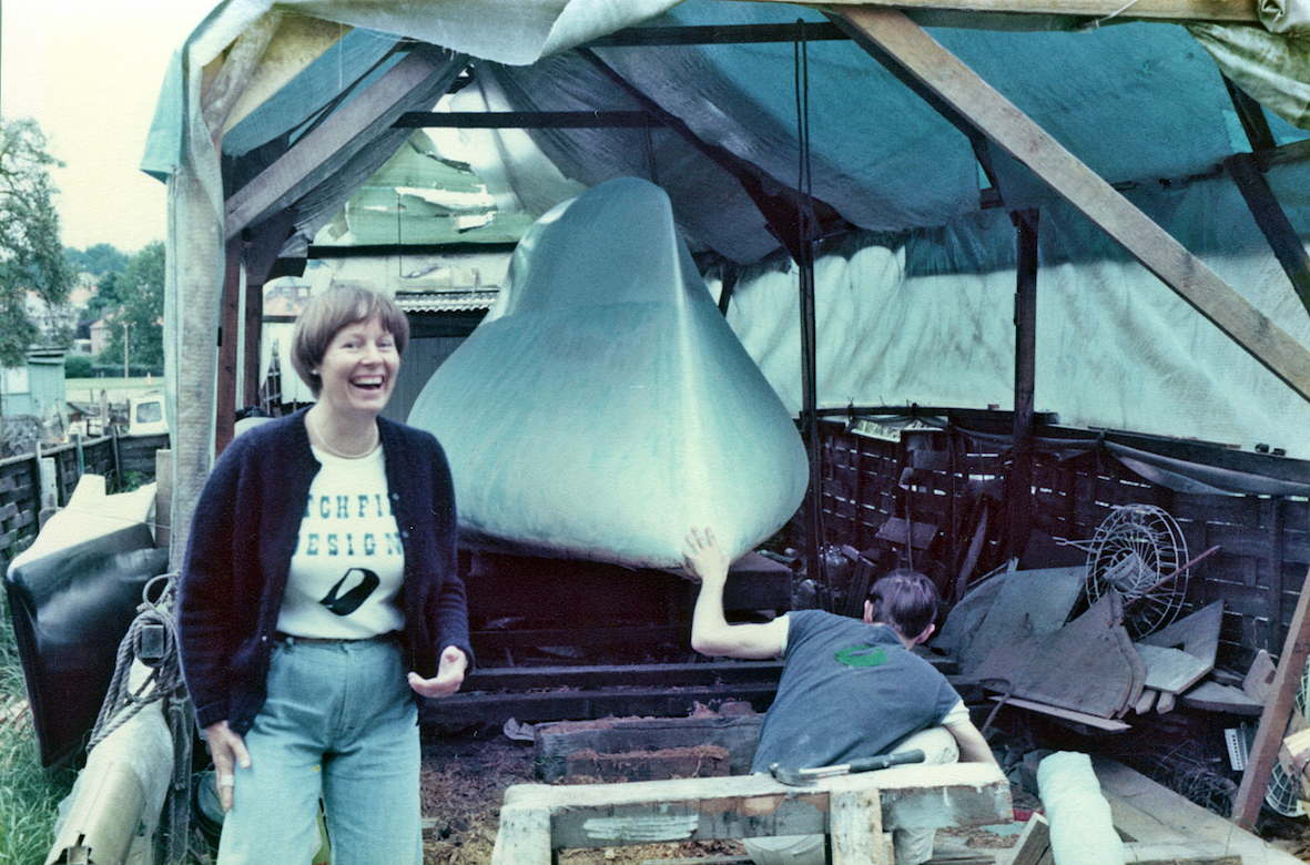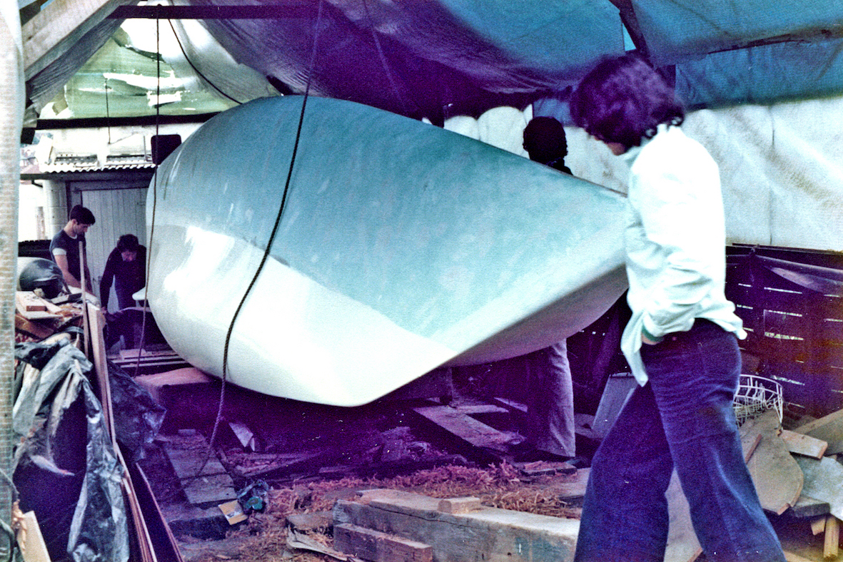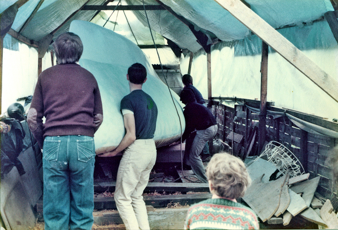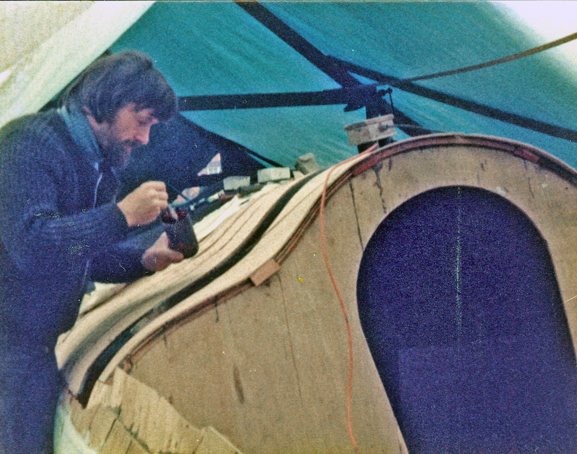 The initial task was to erect a temporary cover over the back garden to protect the project. That temporary shelter remained for five years, the time it took to build the trimaran. By that time the OSTAR was history and the rules for the next race, some four years later, had been altered. No longer did the design comply with the smallest class, but that's life.