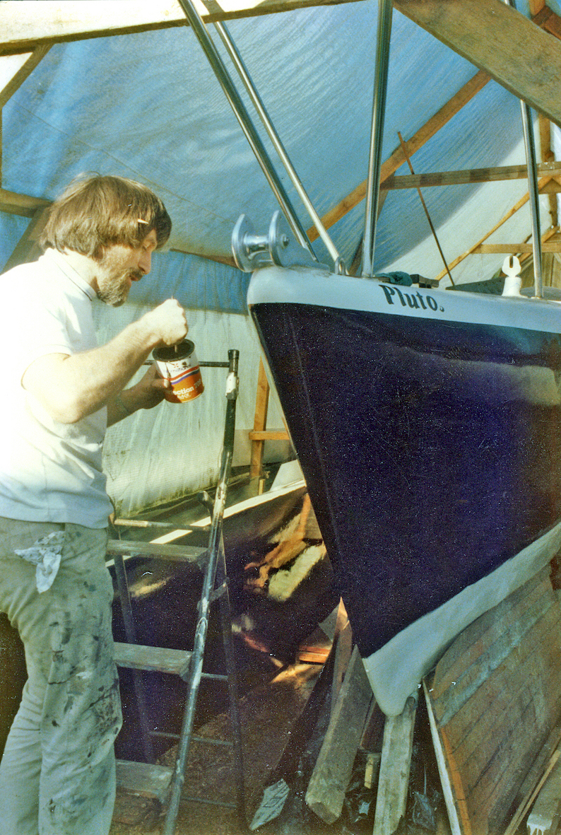 Time passed and I still wanted a boat so I bought a set of plans for a small cruising yacht. Susan followed me everywhere as I built it, and as it developed she would happily sit on the deck, or curl up in the cockpit, confident I wouldn't go anywhere without her.